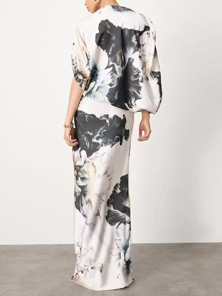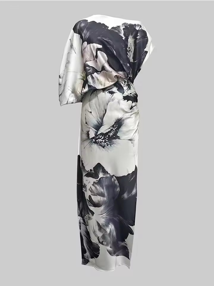 The Gymystars floral long dress blends artistic design with modern elegance, making it a standout choice for summer evenings. Its unique silhouette and refined details create a graceful, fashion-forward look.